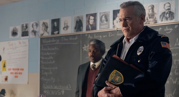 In the sixth episode of Hysteria! titled "Speaking in Tongues," the series dives deeper into the enigmatic world of the small town of Happy Hollow, where fear and suspicion run rampant. Chief Dandridge, with Bruce Campbell's signature charm, separates Judith and Dylan for interrogation, suspecting Dylan might be a Satanic cult leader. In a private interrogation, Judith eventually bursts out, claiming that Dylan is the cult leader and she is his number one follower. Chief Dandridge realizes Dylan might have gotten himself into serious trouble. Later, he finds a note related to the white mask, and a call from Faith immediately follows, further complicating the plot.